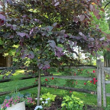 Merlot Redbud (Cercis canadensis ‘Merlot’) – A stunning ornamental tree that thrives in well-drained soil and full sun to partial shade. Its heart-shaped leaves emerge deep red in spring, transitioning to dark purple throughout the summer, with vibrant yellow to orange hues in the fall. In early spring, it is adorned with clusters of pink to purple flowers, attracting pollinators. Growing 20-30 feet tall with a rounded form, it's perfect for adding color and elegance to gardens.